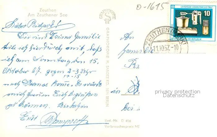 Zeuthen Partie am Zeuthener See Zeuthen postalisch gelaufen 1967 Erhaltung siehe scans [FriedD77] Frierer
