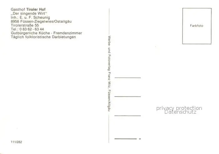 Ziegelwies Gasthof Tiroler Hof Der Singende Wirt Zither Franzl Gaststube Schloss Ziegelwies postalisch nicht gelaufen nach 1965 Erhaltung siehe scans [WerneD78] WernPID7