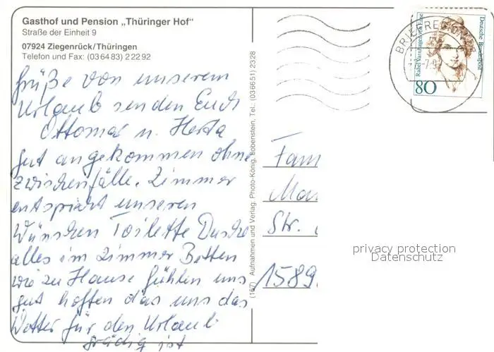 Ziegenrueck Gasthof Pension Thueringer Hof Restaurant Ortsansicht mit Kirche Ziegenrueck postalisch gelaufen 1997 Erhaltung siehe scans [FriedD77] Frierer