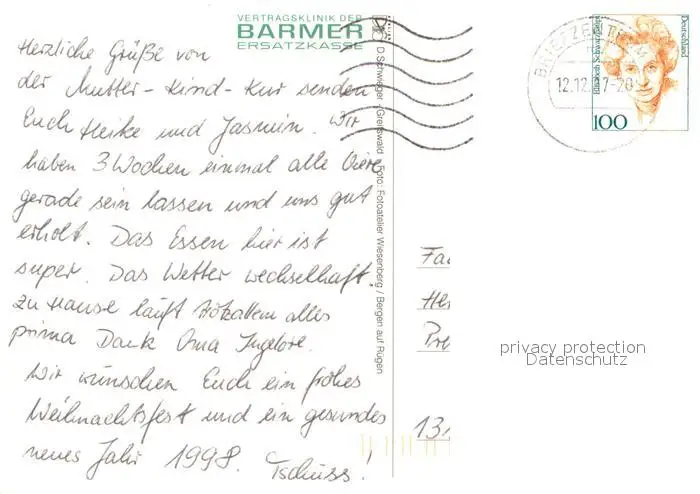 Zingst_Ostseebad Mutter und Kind Kurklinik Zingst Foyer Schwimmhalle Spielplatz Zingst_Ostseebad postalisch gelaufen 1998 Erhaltung siehe scans [WerneD78] WernPID7