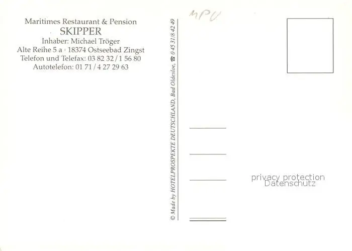Zingst_Ostseebad Restaurant Pension Skipper Zingst_Ostseebad postalisch nicht gelaufen nach 1965 Erhaltung siehe scans [FriedD77] Frierer