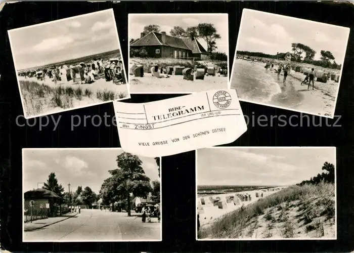 Zingst_Ostseebad Strassenpartie Strand Reisetelegramm Zingst_Ostseebad postalisch gelaufen 1962 Erhaltung siehe scans [FriedD77] Frierer