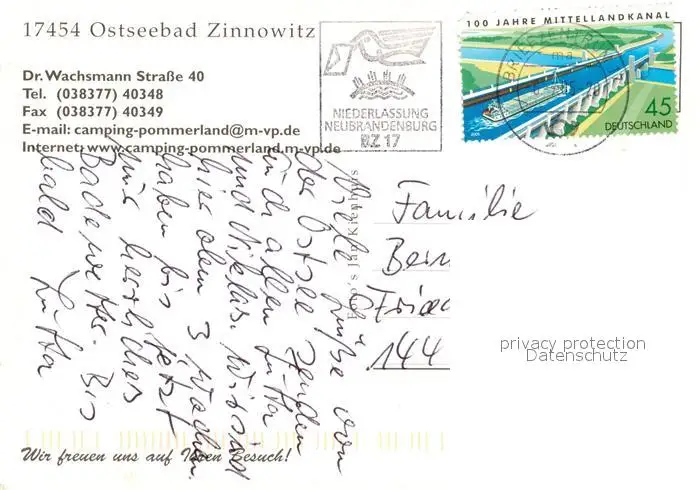 Zinnowitz_Ostseebad Campingplatz Pommernland Zinnowitz_Ostseebad postalisch gelaufen 2005 Erhaltung siehe scans [FriedD77] Frierer