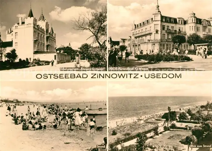 AK / Ansichtskarte Zinnowitz_Ostseebad Erholungsheim Klement Gottwald FDGB Feriendienst IG Wismut Strand Promenade Zinnowitz_Ostseebad