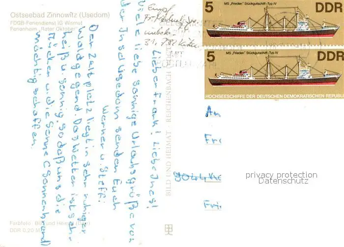 Zinnowitz_Ostseebad FDGB Feriendienst IG Wismut Ferienheim Roter Oktober Strand Zinnowitz_Ostseebad postalisch gelaufen 1982 Erhaltung siehe scans [FriedD77] Frierer