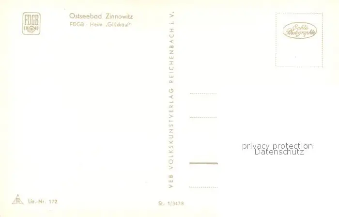 Zinnowitz_Ostseebad FDGB-Heim Glueckauf Zinnowitz_Ostseebad postalisch nicht gelaufen 1921-1965 Erhaltung siehe scans [LiesaD40] LiesID40