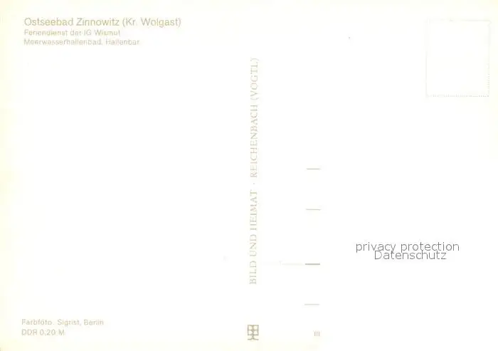 Zinnowitz_Ostseebad Feriendienst der IG Wismut Hallenbar Meerwasserhallenbad Zinnowitz_Ostseebad postalisch nicht gelaufen 1985 Erhaltung siehe scans [FriedD77] Frierer