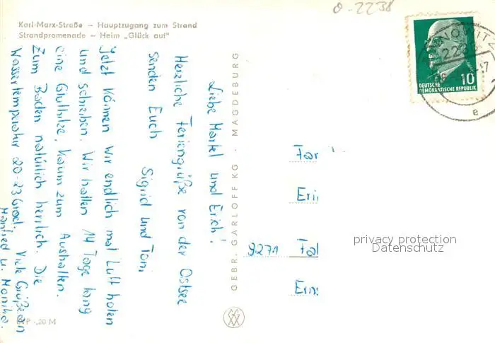 Zinnowitz_Ostseebad Karl Marx Strasse Strand Promenade FDGB Heim Glueck auf Zinnowitz_Ostseebad postalisch gelaufen 1971 Erhaltung siehe scans [FriedD77] Frierer