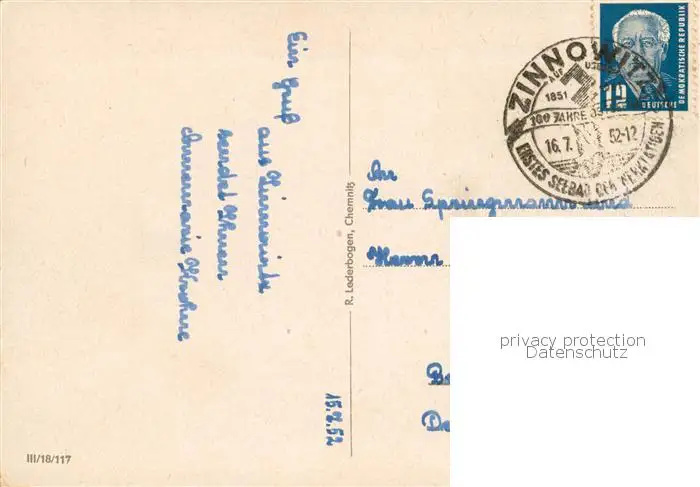 Zinnowitz_Ostseebad Weststrand Zinnowitz_Ostseebad postalisch gelaufen 1952 Erhaltung siehe scans [WerneD78] WernPID7