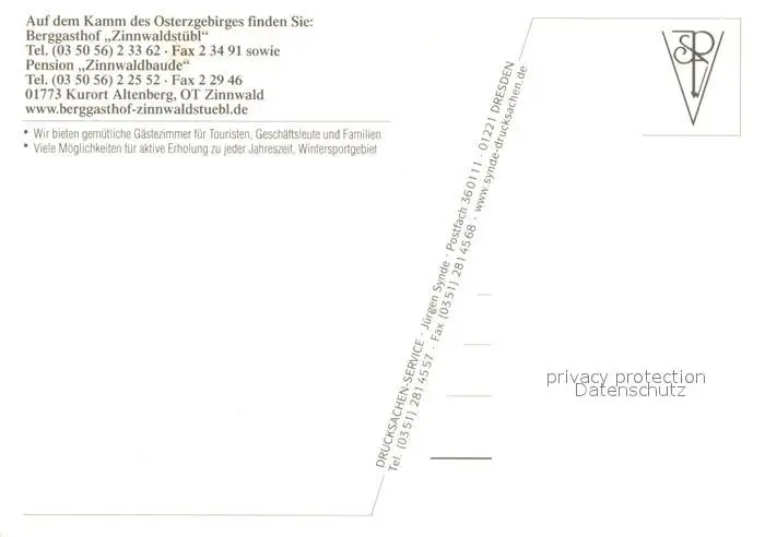 Zinnwald-Georgenfeld Berggasthof Pension Zinnwaldstuebl Pferdeschlitten Zinnwald-Georgenfeld postalisch nicht gelaufen nach 1965 Erhaltung siehe scans [FriedD77] Frierer
