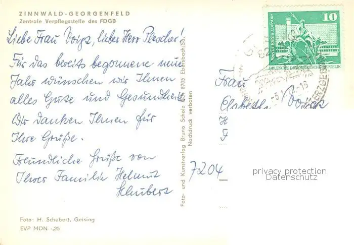 Zinnwald-Georgenfeld Zentrale Verpflegstelle des FDGB im Winterzauber Zinnwald-Georgenfeld postalisch gelaufen 1979 Erhaltung siehe scans [FriedD77] Frierer
