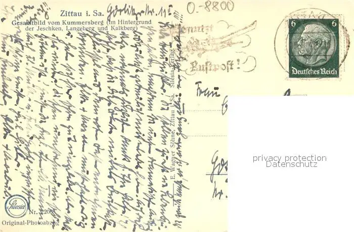 Zittau Gesamtbild vom Kummersberg Jeschken Zittau postalisch gelaufen 1921-1965 Erhaltung siehe scans [LiesaD40] LiesID40