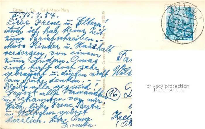 Zittau Kategorie Alte Ansichtskarten Postkarten bx68291 Zittau Karl Marx Platz Zittau postalisch gelaufen 1954 Erhaltung siehe scans [LiesaD40]