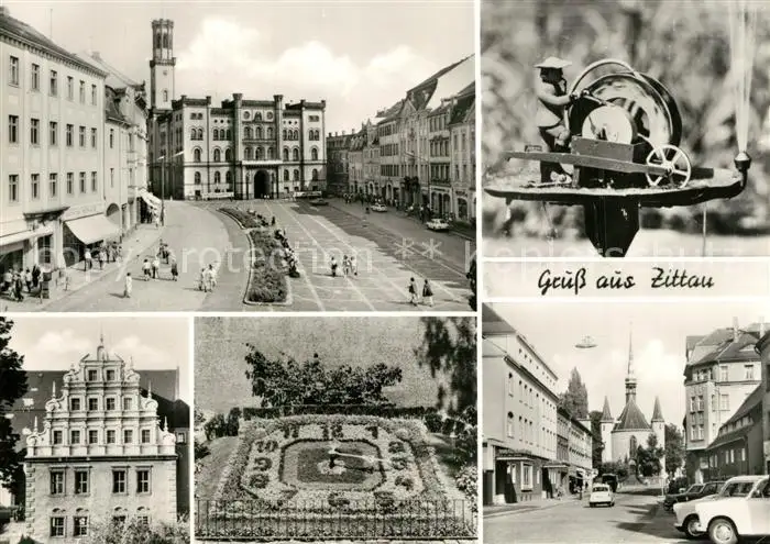 AK / Ansichtskarte Zittau Platz der Jugend Rathaus Schleifermaennel am Gruenen Ring Hefftergiebl Stadtmuseum Blumenuhr HOG Volkshaus Weberkirche Zittau