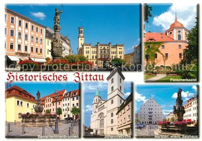 AK / Ansichtskarte Zittau Rathaus Fleischerbastei Johanniskirche Marstall Zittau