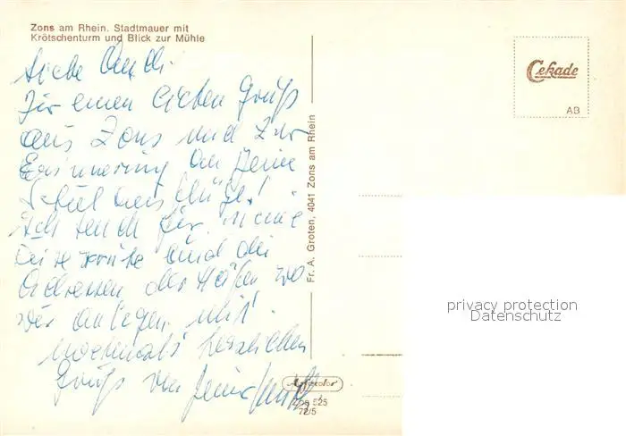 Zons Stadtmauer Kroetschenturm Muehle Zons postalisch nicht gelaufen 1972 Erhaltung siehe scans [FriedD77] Frierer