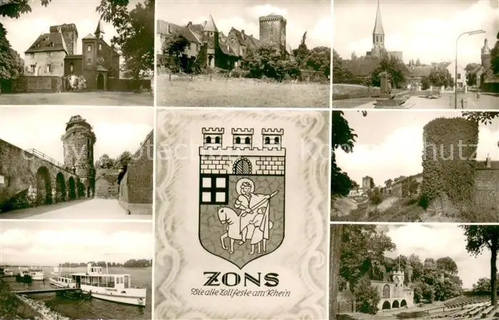 AK / Ansichtskarte Zons_Rhein Schloss Ruine Kirche Stadtmauer Turm Rheinanleger
