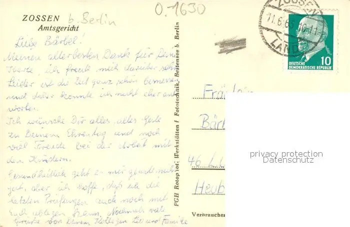 Zossen_Brandenburg Amtsgericht postalisch gelaufen 1965 Erhaltung siehe scans [WerneD78] WernPID7