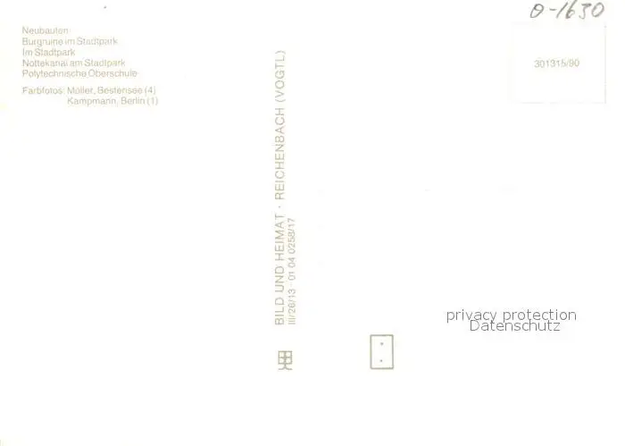 Zossen_Brandenburg Neubauten Burgruine Stadtpark Nottekanal Polytechnische Oberschule postalisch nicht gelaufen 1990 Erhaltung siehe scans [FriedD77] Frierer