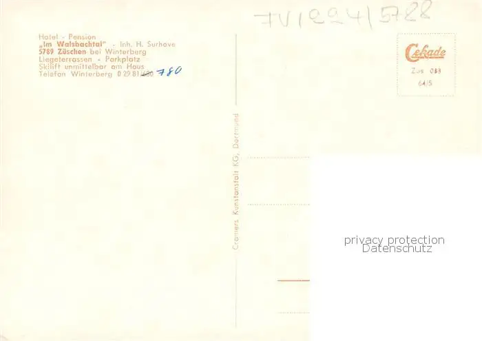 Zueschen__Sauerland Hotel Pension Im Walsbachtal postalisch nicht gelaufen 1964 Erhaltung siehe scans [FriedD77] Frierer