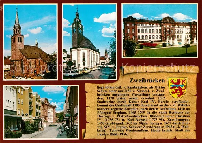AK / Ansichtskarte Zweibruecken_Pfalz Alexanderkirche Karlskirche Schloss Fussgaengerzone Zweibruecken Pfalz