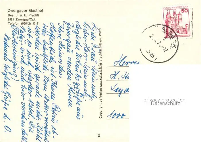 Zwergau Zwergauer Gasthof Gastraum Ansicht vom Waldrand Zwergau postalisch gelaufen nach 1965 Erhaltung siehe scans [FriedD77] Frierer