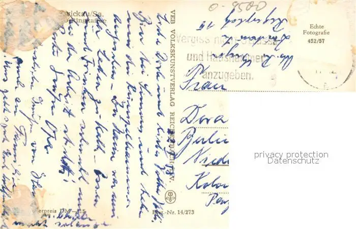 Zwickau_Sachsen HO Ringkaffee Zwickau Sachsen postalisch gelaufen 1921-1965 Erhaltung siehe scans [WerneD78] WernPID7