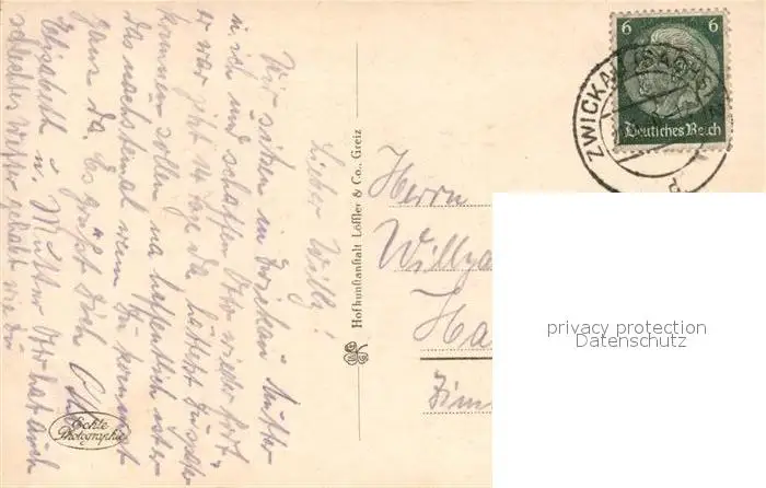 Zwickau_Sachsen Markt Innenstadt Zwickau Sachsen postalisch gelaufen 1940 Erhaltung siehe scans [FriedD77] Frierer