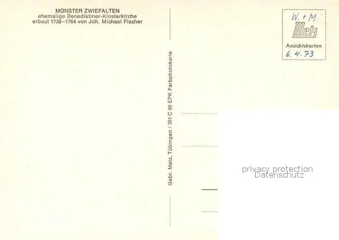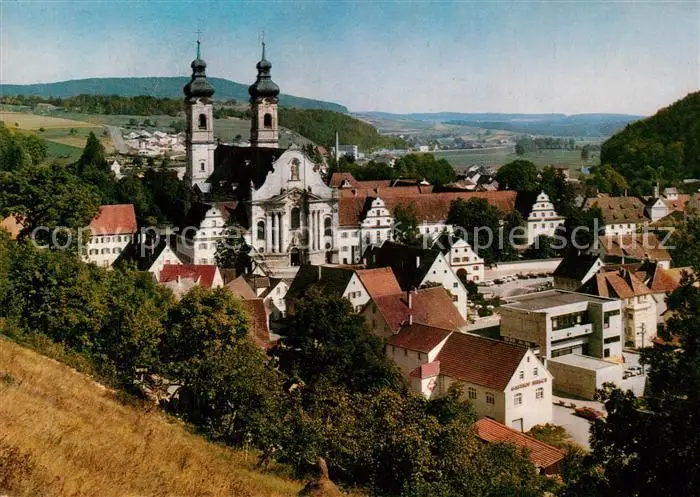 Zwiefalten_Wuerttemberg Ortsansicht mit Muenster ehemalige Benediktiner Klosterkirche 18. Jhdt. Schwaebische Alb Zwiefalten Wuerttemberg postalisch nicht gelaufen 1973 Erhaltung siehe scans [FriedD77] Frierer