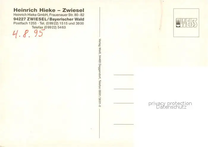 Zwiesel_Bad_Gottleuba-Berggiesshuebel Bayerwald Baerwurzerei Hieke Destillierblase Baerwurzprobe Filmvorfuehrung Buero Verkauf Zwiesel_Bad postalisch nicht gelaufen 1995 Erhaltung siehe scans [WerneD78] WernPID7