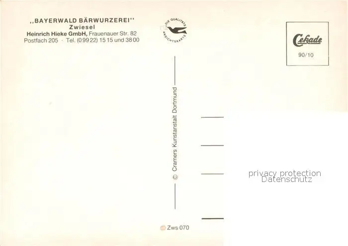 Zwiesel_Niederbayern Bayerwald Baerwurzerei Probierstube Destillierblase Ortsansicht Zwiesel Niederbayern postalisch nicht gelaufen 1990 Erhaltung siehe scans [FriedD77] Frierer