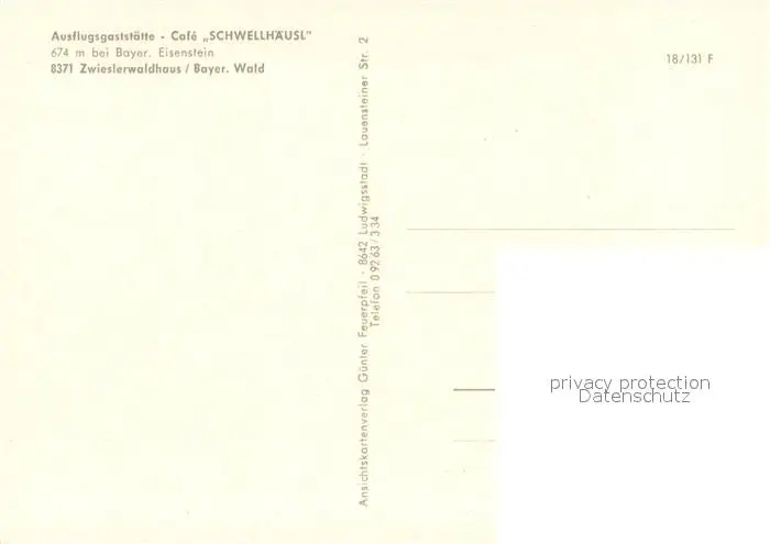 Zwiesel_Niederbayern Gaststaette Cafe Schwellhaeusl Terrasse Teich Auerhahn Zwiesel Niederbayern postalisch nicht gelaufen nach 1965 Erhaltung siehe scans [WerneD78] WernPID7