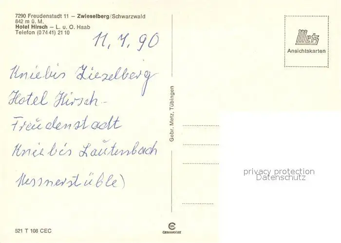 Zwieselberg_Freudenstadt Kategorie Alte Ansichtskarten Postkarten bx62638 Zwieselberg_Freudenstadt Hotel Hirsch Zwieselberg_Freudenstadt postalisch nicht gelaufen 1990 Erhaltung siehe scans [KathaD81]