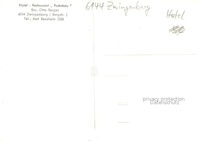 Zwingenberg_Bergstrasse Hotel Restaurant Fuchsbau Gaststube Zwingenberg_Bergstrasse postalisch nicht gelaufen nach 1965 Erhaltung siehe scans [WerneD78] WernPID7