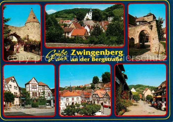 AK / Ansichtskarte Zwingenberg_Bergstrasse Stadttore Panorama Fachwerkhaeuser Dorfstrasse Zwingenberg_Bergstrasse