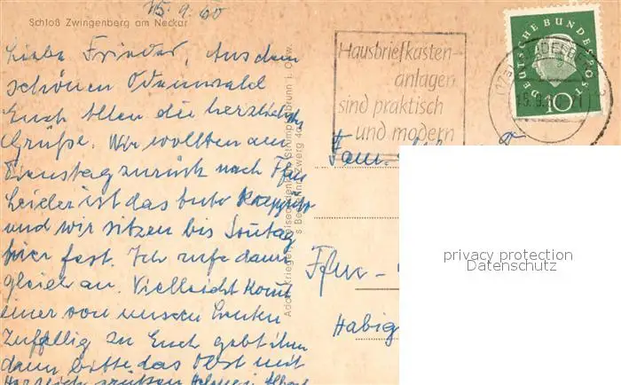 Zwingenberg_Neckar Ausflugsdampfer Schloss Zwingenberg Neckar postalisch gelaufen 1960 Erhaltung siehe scans [FriedD77] Frierer