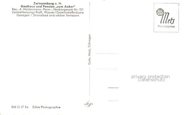 Zwingenberg_Neckar Fliegeraufnahme Gasthaus Pension zum Anker Zwingenberg Neckar postalisch nicht gelaufen nach 1965 Erhaltung siehe scans [LiesaD40] LiesID40