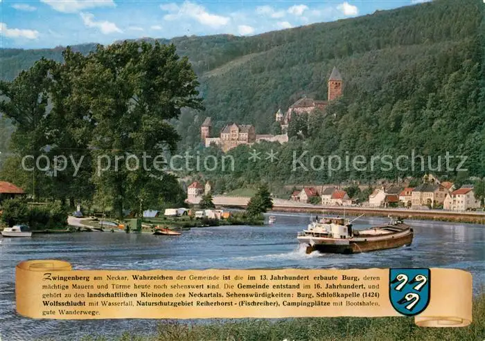 Zwingenberg_Neckar Partie am Neckar mit Burg Zwingenberg Neckar postalisch gelaufen nach 1965 Erhaltung siehe scans [WerneD78] WernPID7