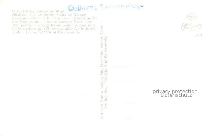 oelberg_Koenigswinter Siebengebirge Berggasthaus Panorama oelberg Koenigswinter postalisch nicht gelaufen 1921-1965 Erhaltung siehe scans [WerneD78] WernPID7