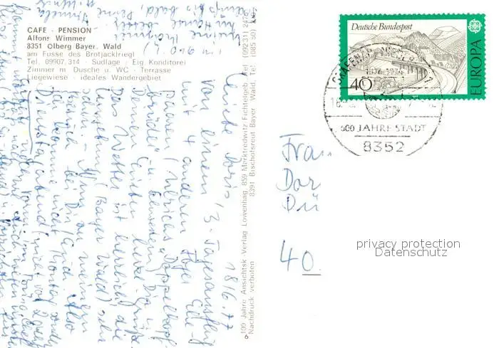 oelberg_Schoellach Kategorie Alte Ansichtskarten Postkarten bx46011 oelberg_Schoellach Cafe Pension Alfons Wimmer oelberg_Schoellach postalisch gelaufen 1977 Erhaltung siehe scans [LiesaD40]