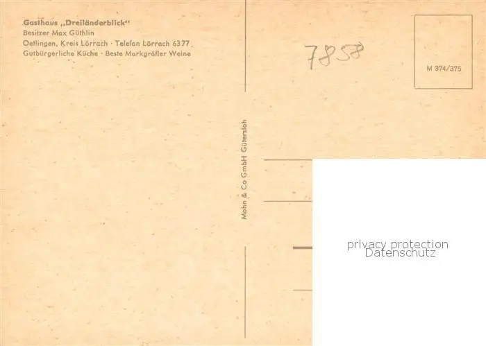 oetlingen_Weil_Rhein Gasthaus Dreilaenderblick Restaurant Fernsicht oetlingen_Weil_Rhein postalisch nicht gelaufen nach 1965 Erhaltung siehe scans [FriedD77] Frierer