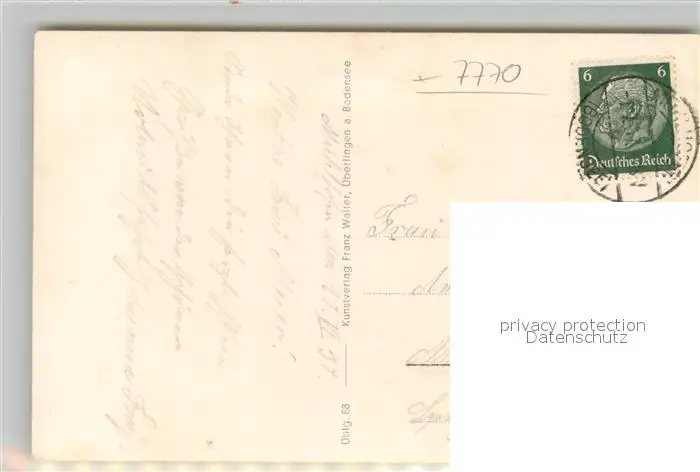 ueberlingen_Bodensee Blick vom Hoedingersteinbruch auf Bodman Ludwigshafen und Sipplingen ueberlingen Bodensee postalisch gelaufen 1937 Erhaltung siehe scans [FriedD77] Frierer