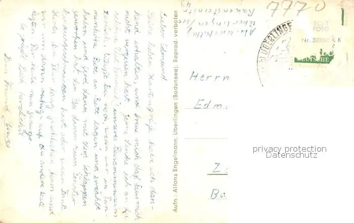 ueberlingen_Bodensee Franziskanertor Gallerturm Hafen Susohaus Seepromenade Muenster Hofstatt Stadtgarten Landungsplatz Faehre ueberlingen Bodensee postalisch gelaufen 1921-1965 Erhaltung siehe scans [FriedD77] Frierer
