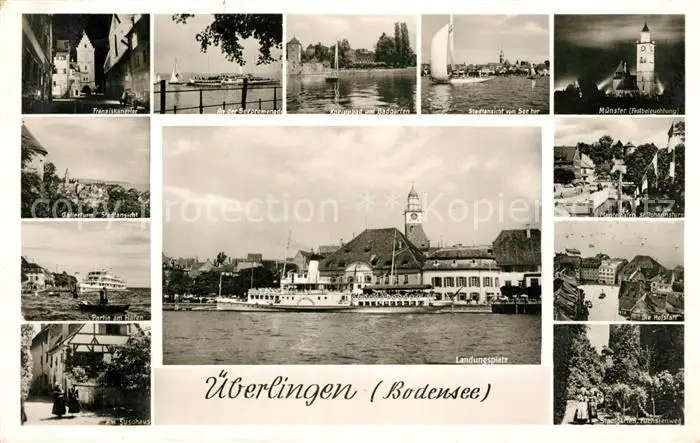 ueberlingen_Bodensee Franziskanertor Gallerturm Hafen Susohaus Seepromenade Muenster Hofstatt Stadtgarten Landungsplatz Faehre ueberlingen Bodensee postalisch gelaufen 1921-1965 Erhaltung siehe scans [FriedD77] Frierer