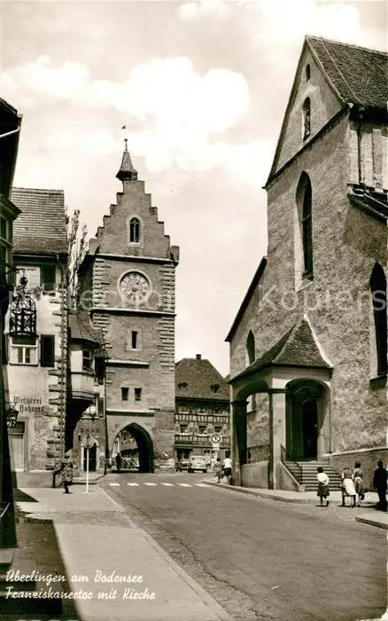 AK / Ansichtskarte ueberlingen_Bodensee Franziskanertor mit Kirche Altstadt ueberlingen Bodensee