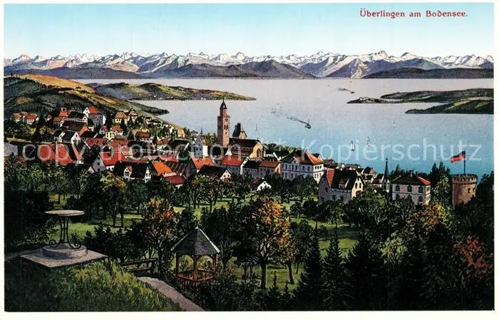 ueberlingen_Bodensee Panorama mit Alpen ueberlingen Bodensee postalisch nicht gelaufen um 1915 Erhaltung siehe scans [FriedD77] Frierer