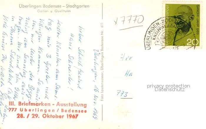 ueberlingen_Bodensee Stadtgarten Gallerturm Quellturm ueberlingen Bodensee postalisch gelaufen 1969 Erhaltung siehe scans [FriedD77] Frierer