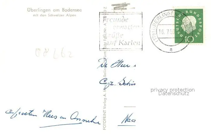 ueberlingen_Bodensee mit Schweizer Alpen ueberlingen Bodensee postalisch gelaufen 1958 Erhaltung siehe scans [WerneD78] WernPID7