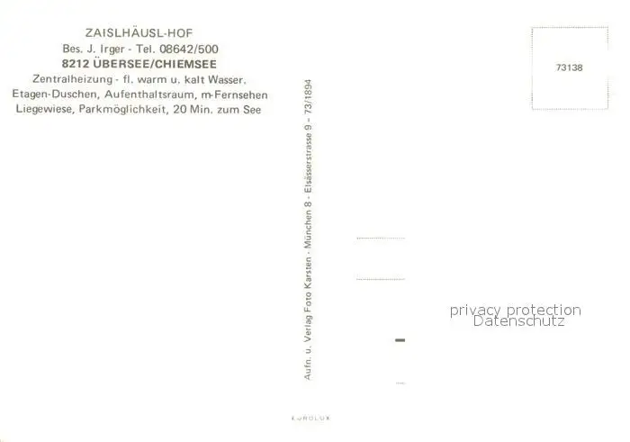 uebersee Zaislhaeusl Hof am Chiemsee uebersee postalisch nicht gelaufen nach 1965 Erhaltung siehe scans [FriedD77] Frierer