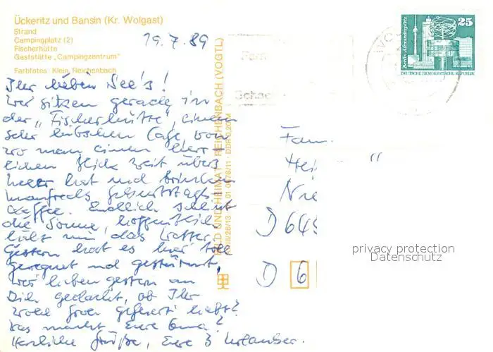ueckeritz_Usedom Campingplatz ueckeritz-Bansin Strand Fischerhuette Gaststaette Campingzentrum ueckeritz Usedom postalisch gelaufen 1989 Erhaltung siehe scans [PaolaD17] PaolPID1